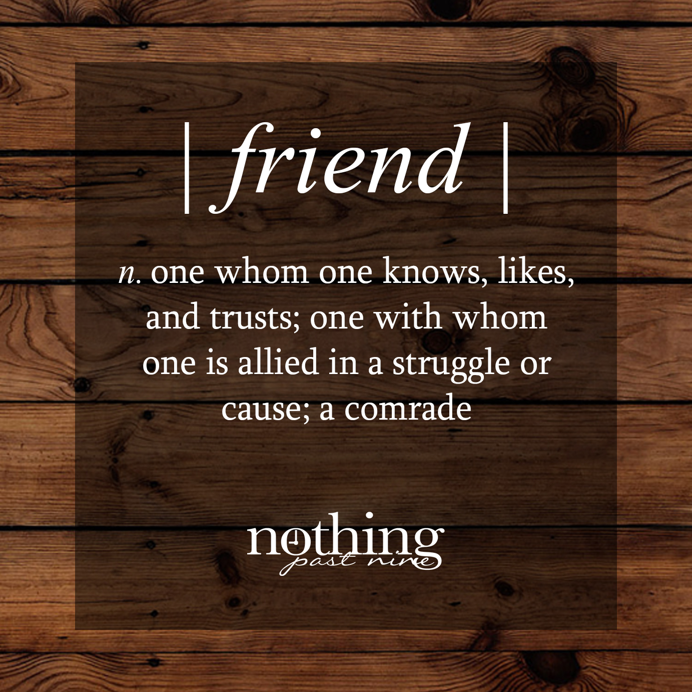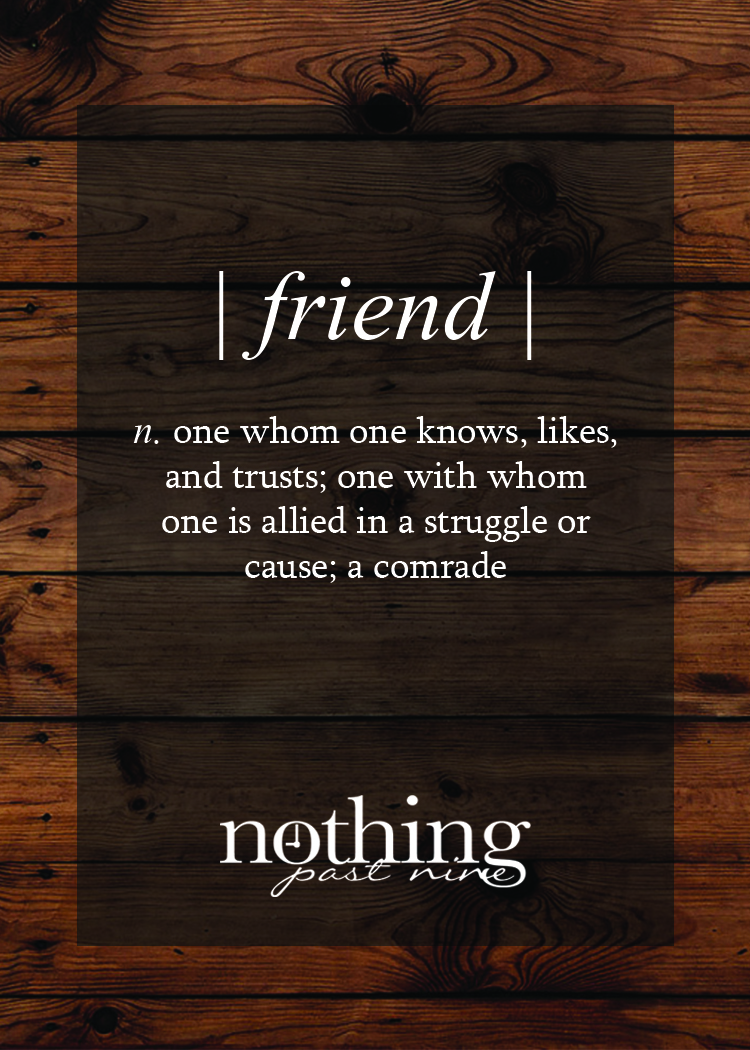 This week I am determined to be a better friend to those who consider me one! I find it’s easy to be consumed by our own situation, but tough to put that aside to connect with someone else on a deeper level. I am so grateful for the friends I have and all they do for me, I want to make sure I’m giving it back and sharing it with others! Let’s be honest, it takes a lot to put up with a crazy gal like me, and as a small example, there is no way Nothing Past Nine would have gotten past the dream stage without UH LOT of support!